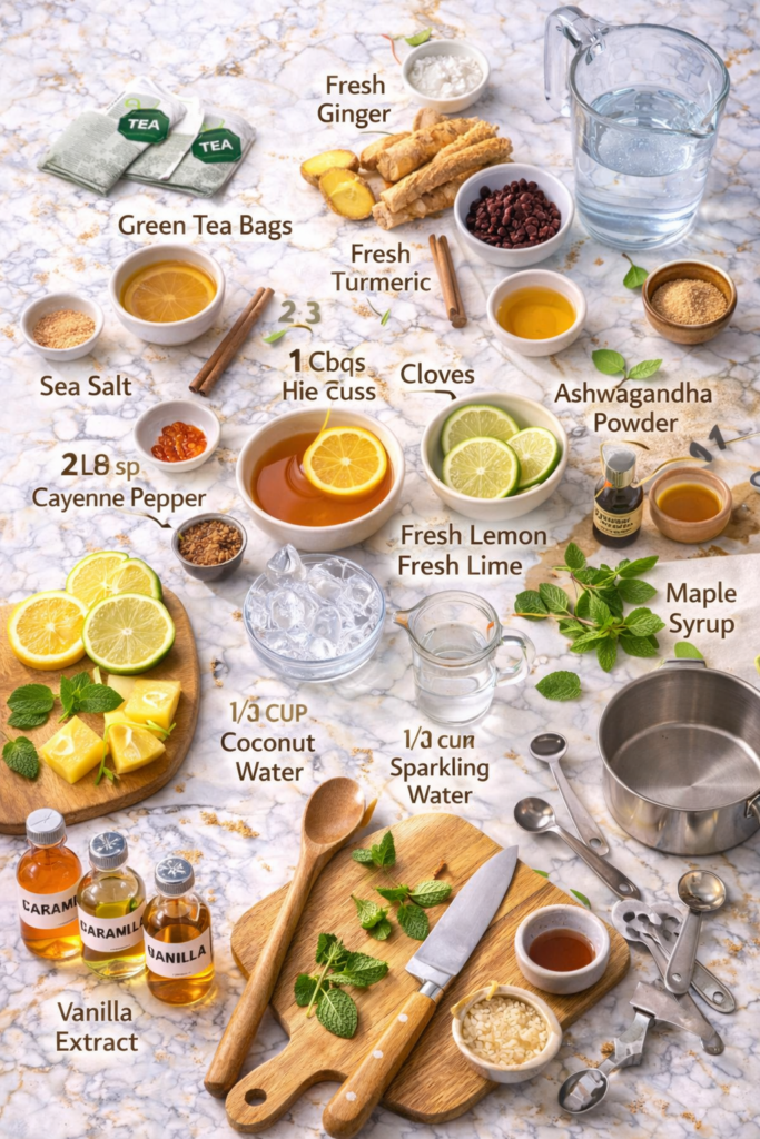 This drink gives you a steady energy boost without the crash. The green tea provides gentle caffeine, the adaptogens support your nervous system, and the electrolytes keep you hydrated in a way plain water doesn’t.