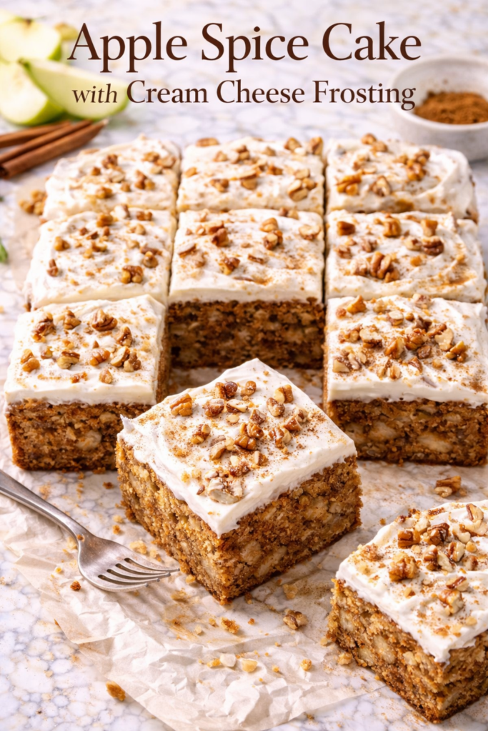 This one has layers of warm cinnamon, nutmeg, and cloves baked right into a soft, incredibly moist crumb — and then finished with a tangy cream cheese frosting that honestly makes the whole thing.