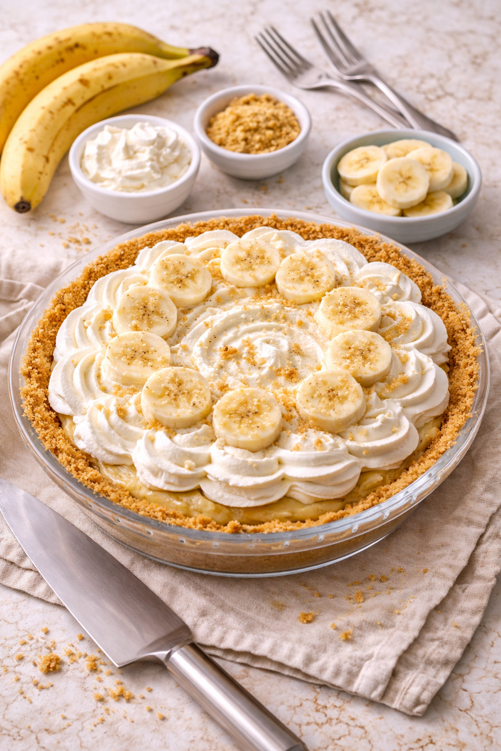 It’s creamy, sweet, and way easier than it looks. The crust is buttery and holds everything together. The custard is smooth and rich without being heavy. And those bananas? They add just enough freshness to keep you going back for another bite.