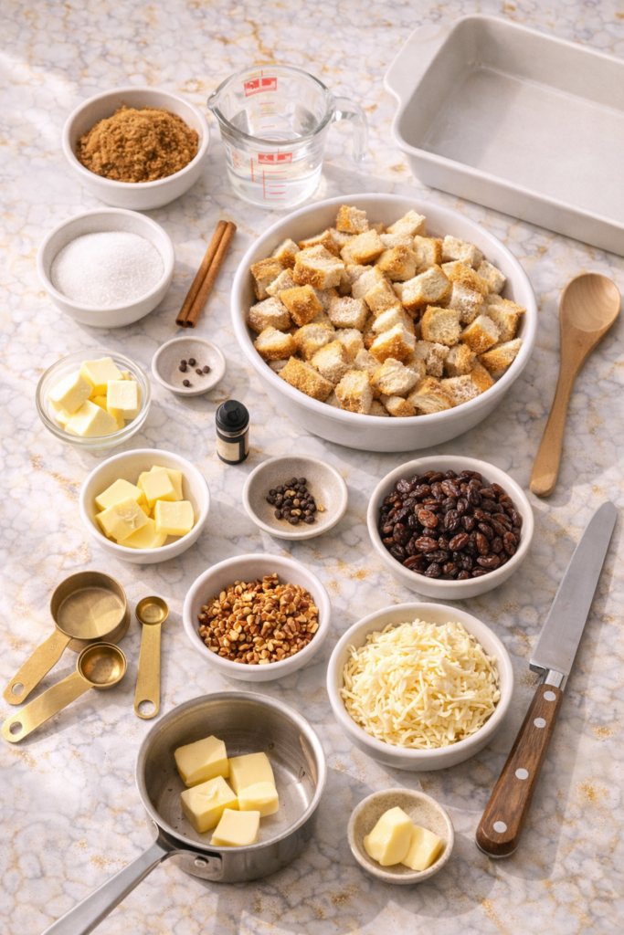 The beauty of this dessert is that it’s not fussy. You’re not tempering chocolate or folding egg whites. You’re just layering bread, fruits, nuts, and cheese, then pouring warm syrup over everything.