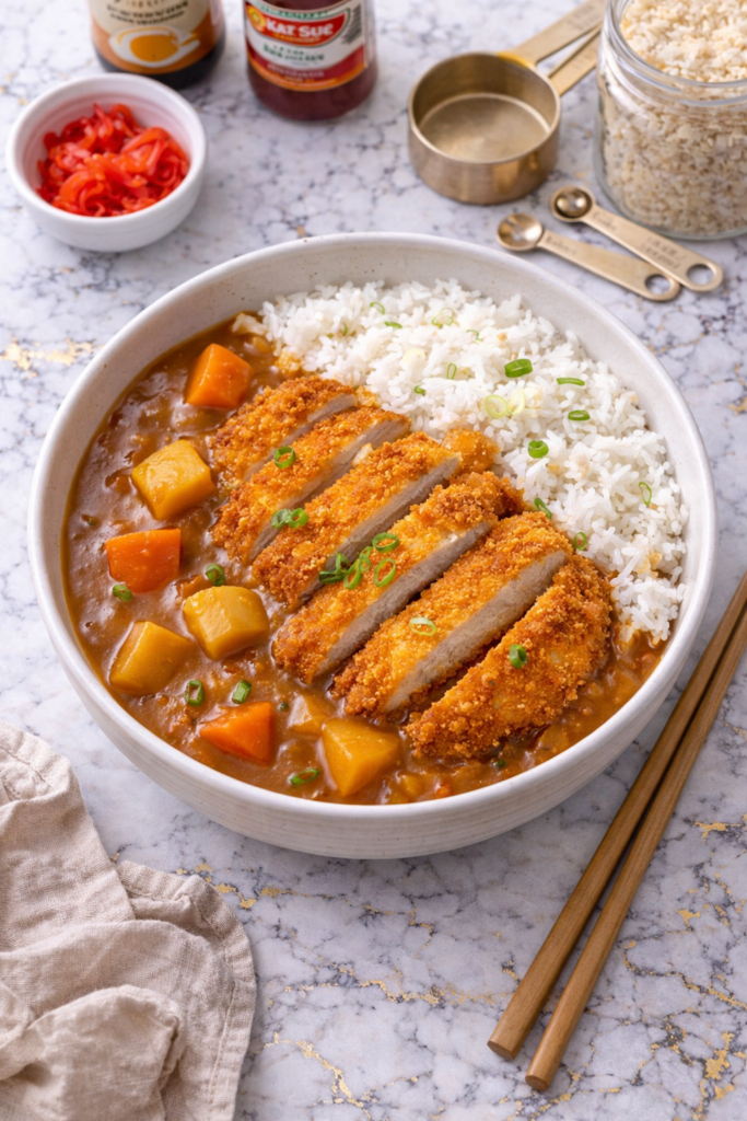 Chicken katsu curry is one of the most satisfying meals you can make at home — golden, panko-crusted chicken, a deeply savory Japanese curry sauce, and a pile of fluffy white rice to soak it all up.