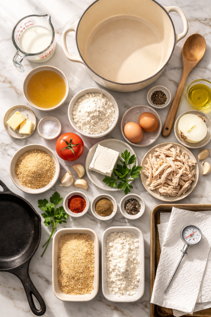 • Kitchen thermometer (for oil temperature — don’t skip this)
