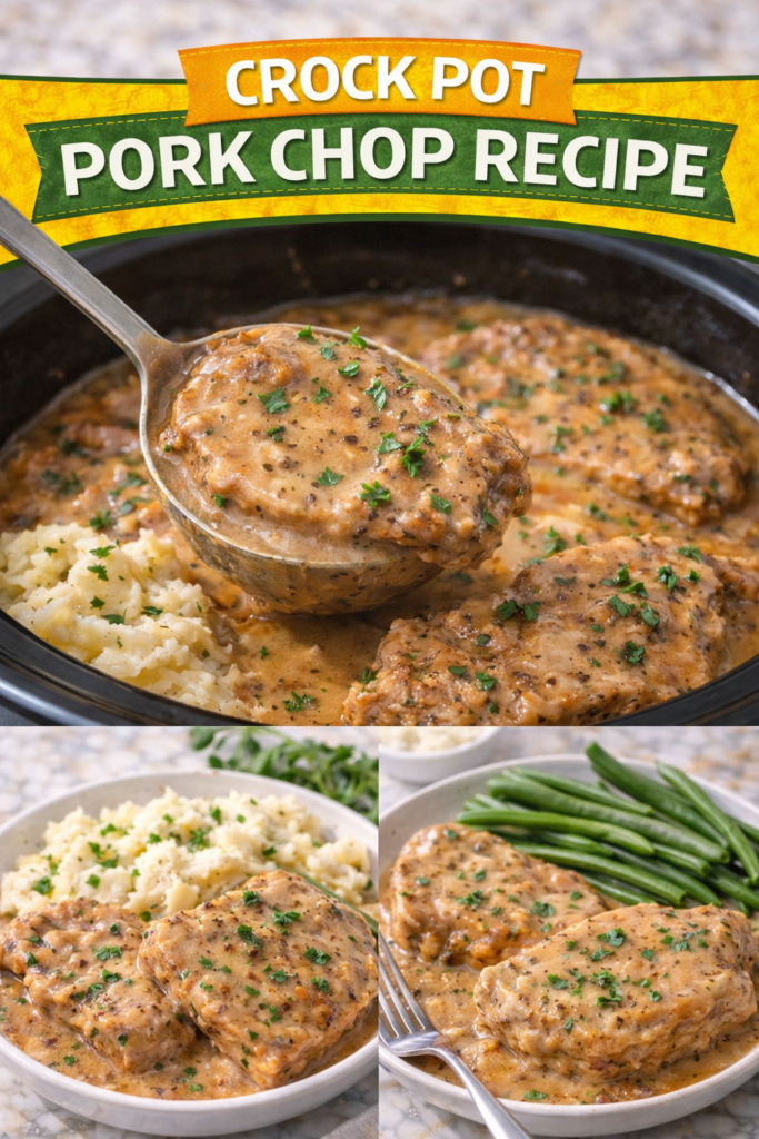 These crock pot pork chops come out ridiculously tender. Like, cut-with-a-fork tender. The kind of tender that makes you question why you’ve been pan-frying pork chops your entire life.