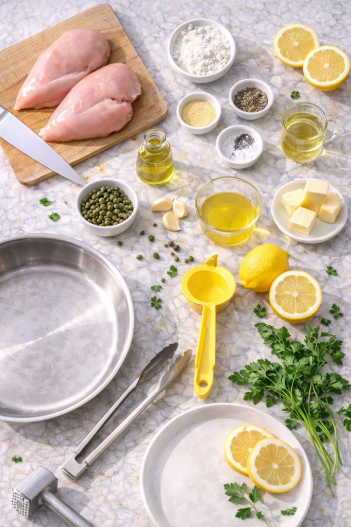 Turns out, it’s one of the easiest things I’ve made. Thin pan-fried chicken, a bright lemon-butter-caper sauce, on the table in 30 minutes. That’s the whole story.