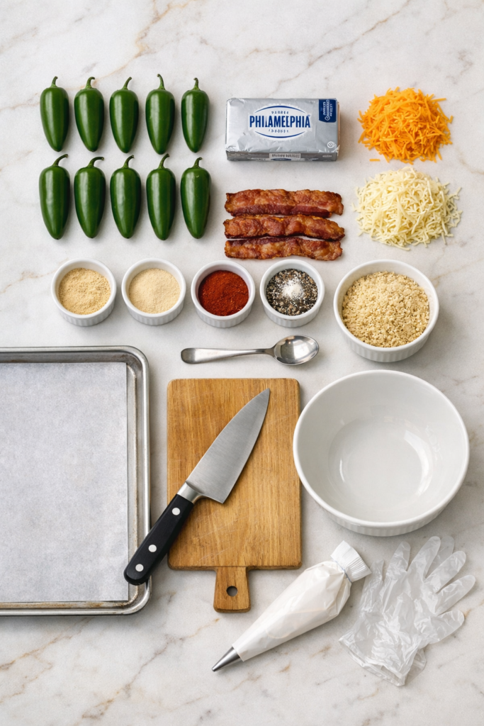 Fresh jalapeños are the move here. They hold their shape and give you the right texture. Jarred jalapeños are too soft and turn mushy in the oven.