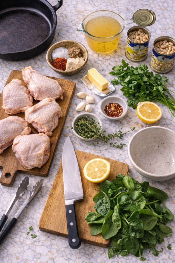 This Garlic Butter Chicken and White Bean Skillet is the kind of dinner that hits every craving and still racks up 52 grams of protein per serving. It’s rich, it’s garlicky, it’s got crispy-edged chicken thighs and creamy white beans swimming in a buttery pan sauce.