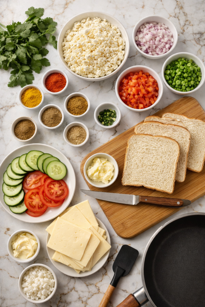 Make the filling a day ahead if you want. It actually tastes better the next day because the spices have time to really get into the paneer. Just store it in an airtight container in the fridge and toast fresh sandwiches whenever you’re hungry.