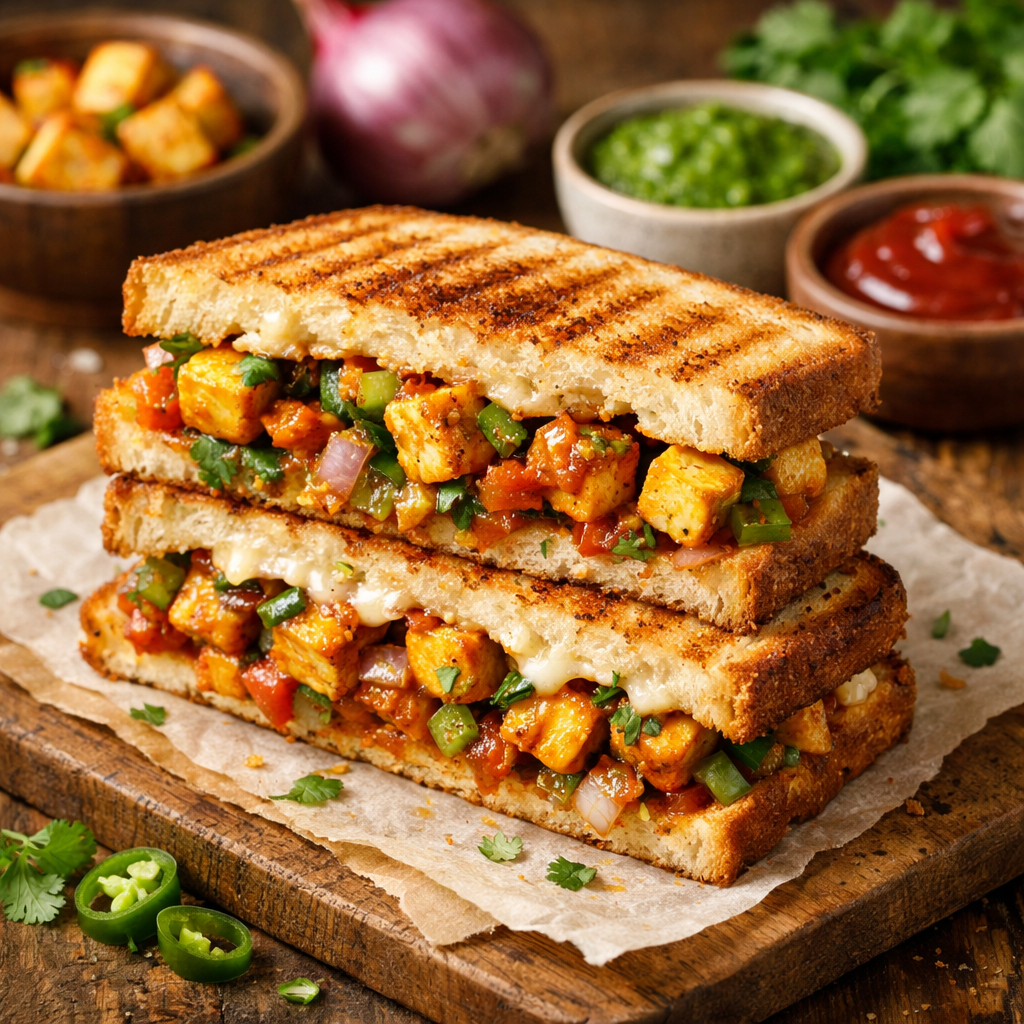 No paneer? Use firm tofu instead. Press it well to remove excess moisture, then crumble and use the same way. You can also use scrambled eggs for a completely different but equally delicious sandwich.