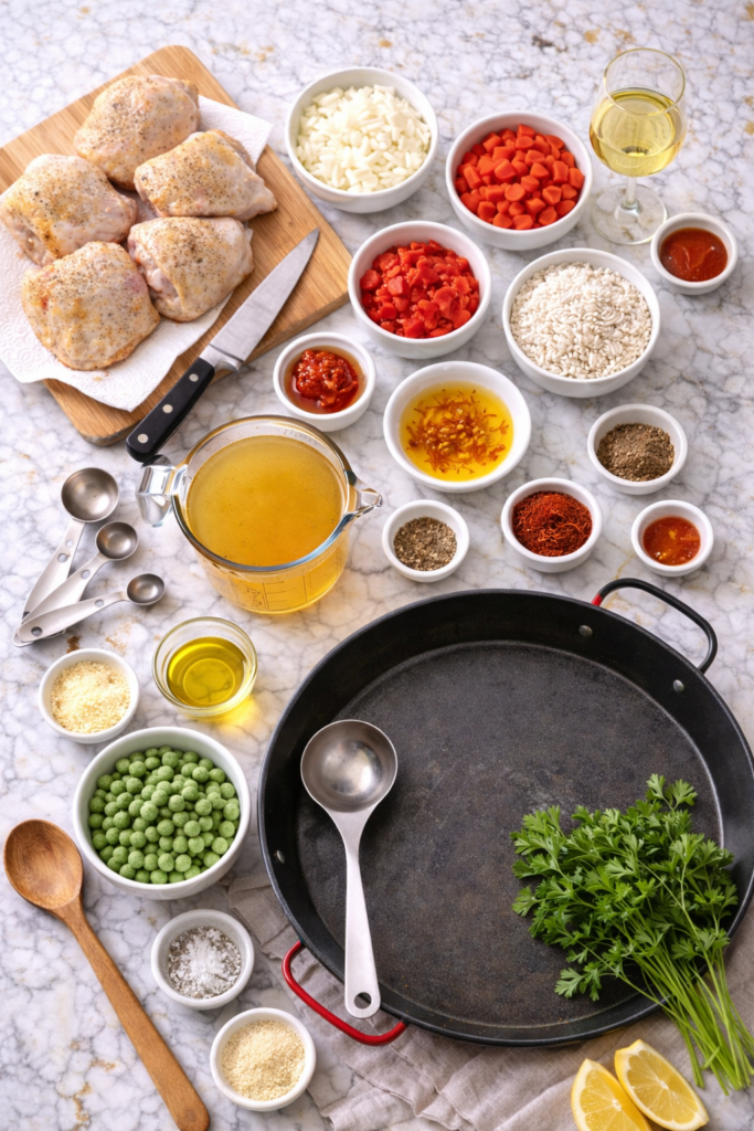 | Chicken thighs | Shrimp or rabbit | Shrimp cooks faster (5-7 min). Rabbit is authentic and lean. |